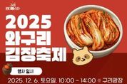 (누리일보) 구리시상권활성화재단은 오는 12월 6일 구리광장에서 ‘2025 와구리 김장축제’를 개최한다고 밝혔다. 이번 축제는 ‘경기도 상권 친화형 도시 조성 공모사업’ 선정으로 추진되는 ‘구리 윈터페스타’의 첫 번째 행사로, 지역 농산물 소비 촉진, 전통문화 체험, 이웃돕기 나눔 실천을 주요 가치로 삼아 시민 누구나 참여할 수 있는 겨울 축제로 마련됐다. 축제의 하이라이트인 김장 체험은 시민들이 직접 김치를 담가보는 프로그램으로 진행되며, 흑백요리사로 큰 인기를 얻고 있는 이모카세 김미령 한식 요리사의 지도로 구리시새마을회, 구리 도시공사, 무지개합창단 등 지역 자원봉사자들이 함께해 김장을 처음 접하는 시민들도 손쉽게 전통 김치를 완성할 수 있도록 도울 예정이다. 이날 담근 김치의 일부는 관내 홀로 어르신, 다문화가정 등 취약계층에 전달돼 시민이 직접 참여하는 연말 나눔 활동으로 따뜻한 의미를 더한다. 또한 축제장을 찾은 시민들을 위해 트로트 가수 태진아의 공연, 가야금 영재 조영재 & 아인스바움 윈드 챔버 연주 등 풍성한 무대 프로그램과 지역 소상공인 먹거리 부스, 다양한 체험 코너 등 볼거리와