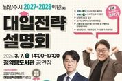 (누리일보) 남양주시는 오는 3월 7일 정약용도서관 공연장에서 관내 고등학생과 학부모를 대상으로 ‘남양주시 2027~2028학년도 대입전략설명회’를 열고, 이에 앞서 2월 9일부터 참가 신청 접수를 진행한다. 이번 설명회는 새 학년이 시작되는 시기에 맞춰 변화하는 대학입시 환경에 대한 최신 정보를 제공하고, 학생과 학부모가 새로운 입시 제도에 신속하고 안정적으로 대응할 수 있도록 지원하고자 마련됐다. 설명회에는 EBS 입시대표강사 김진석, EBS 입시전문가 조만기, 관내 고등학교를 졸업한 대학생 멘토가 참여한다. 주요 내용은 △2027학년도 대입 핵심 가이드 △2028학년도 달라지는 입시 제도 이해 △지역의사제 주요 내용 안내 △대학생 선배가 전하는 대입 준비 경험 등으로 구성됐다. 특히 이번 설명회에서는 2027학년도부터 시행되는 지역의사제 관련 제도의 취지와 전형 구조를 함께 안내한다. 남양주시가 지역의사제 적용 권역에 포함됨에 따라 관내 학생들의 의대 진학 기회 확대와 함께 남양주시의 교육 경쟁력도 한층 강화될 것으로 기대된다. 아울러 우수 인재의 지역 정착과 학군 경쟁력 강화, 인구 유입 등