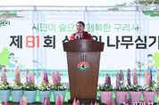(누리일보) 구리시는 3월 31일 구리한강시민공원에서 ‘시민이 숲으로 행복한 구리시’를 주제로 제81회 식목일 기념 나무 심기 행사를 개최했다고 밝혔다. 이번 행사에는 시민 500여 명이 참석했으며, 한강시민공원 고덕토평대교 인근에 조성된 화단에 무궁화 130주, 수국 2,280주 등 꽃 관목 3,030본과 억새 200주를 심었다. 특히 이번 식목일에는 나라꽃인 무궁화를 기념식수로 심어 기후 위기와 국제정세 등 어려운 상황 속에서도 인내와 희망의 의미를 되새기는 뜻을 담았다. 행사와 함께 목재 이용 활성화 캠페인도 병행해 탄소 저감과 기후변화 대응에 대한 시민 인식을 높였다. 백경현 구리시장은 “식목일 나무 심기는 단순한 식재를 넘어 시민과 함께 자연을 체감하는 소중한 시간”이라며 “오늘 심은 나무가 숲으로 성장해 시민이 더욱 행복한 도시로 이어지길 바란다”라고 말했다. 이어 “미래 세대를 위해 지속적인 녹지 조성과 환경 보전에 힘쓰는 한편, 청명·한식 기간 산불 예방에도 각별한 주의를 당부드린다”라고 강조했다.