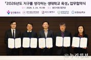 (누리일보) 용인특례시는 24일 시청 접견실에서 용인교육지원청을 비롯해 3개 학교와 ‘지구를 생각하는 생태학교 육성사업’을 위한 협약을 맺었다. 이날 협약식에는 조영민 교육장과 올해 생태학교로 선정된 대지고 유동철 교장, 효자초 정계환 교장, 도현초 연승희 교장, 담당 교사들이 참석했다. 이들 기관은 협약에 따라 ▲학교별 맞춤형 생태교육 운영 지원 ▲교과·교육과정과 연계한 생태교육 프로그램 개발·자문 ▲생태학교 육성사업 성과평가 등을 위해 협력하기로 했다. 올해 4년 차를 맞이한 ‘지구를 생각하는 생태학교’ 사업은 전국 지자체 중 최초로 환경교육 전문 인력을 학교 현장에 배치, 이론 교육을 넘어 실천 중심의 생태전환교육을 하는 용인시의 핵심 환경교육 사업이다. 시는 2023년부터 해마다 공모를 통해 지역 내 학교를 선정해 왔다. 올해 선정된 3개 학교를 포함해 총 12개교가 생태학교 사업에 참여하고 있다. 올해 기준 용인 지역은 초·중·고 343학급, 학생 9149명이 생태교육에 참여하면서 현장 중심의 체계적인 환경교육으로 높은 평가를 받고 있다. 시는 축적된 노하우를 바탕