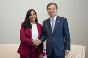(누리일보) 조현 외교부 장관은 9월 25일 오후 유엔본부에서 아니타 아난드(Anita Anand) 캐나다 외교장관과 상견례를 겸한 회담을 갖고, 고위급 교류를 포함한 양국 관계 전반, 미래 실질 협력 방안, 지역 및 국제정세 등에 대해 의견을 교환했다. 조 장관은 올해 한국과 캐나다 신정부 출범 이후 6월 G7 정상회의 계기에 양국 정상회담 개최에 이어 이번 외교장관회담을 통해 양국간 고위급 교류가 지속되고 있어 기쁘다고 하고, 한-캐나다 '포괄적 전략 동반자(Comprehensive Strategic Partnership)' 관계를 보다 더 발전시켜 나가자고 했다. 아난드 장관은 캐나다가 인태지역에 대한 관여를 보다 확대해 나가는 데 있어 한국은 신뢰할 수 있는 파트너라고 하면서, 캐나다가 안보·경제 파트너십 및 에너지 공급망을 다변화하고, 안보·방산 역량을 발전시켜 나가는 과정에서 한국과 긴밀히 협력해 나가기를 바란다고 했다. 조 장관은 한반도 평화·안정을 위한 우리의 대북 정책을 설명하고, 우리의 노력에 대한 국제사회의 이해 제고 및 지지 확산을 위해 G7 의장국인 캐나다의 역할을 당부했다. 아난드 장관
