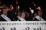 (누리일보) 남양주시는 27일 화도읍 월산교회에서 남양주문화원 주최로 열린 3.1독립만세운동 기념행사가 성황리에 마무리했다고 밝혔다. 이번 행사는 남양주 지역에서 전개된 독립만세운동의 역사적 의미를 되새기고, 지역 독립운동 정신을 계승하기 위해 마련됐다. 행사에는 주광덕 남양주시장을 비롯해 조성대 남양주시의장, 남양주문화원장, 경기북부보훈지청장, 광복회 남양주시지회장, 도·시의원, 독립유공자 후손과 시민 등 300여 명이 참석해 독립 정신을 되새겼다. 행사는 총 3부로 운영됐으며, 1부에서는 기념식과 기념예배가 진행됐다. 시립합창단의 식전공연을 시작으로 기념예배, 주광덕 시장의 경축사와 독립선언서 낭독 등이 이어졌다. 2부에서는 월산교회에서 마석역 광장까지 ‘횃불 대행진’을 진행했다. 풍물패와 군부대의 인도 아래 시민들이 직접 횃불을 들고 행진하며 1919년 당시의 긴박했던 만세 운동 현장을 재현했다. 마지막으로 3부에서는 모든 참석자들이 마석역 광장에서 삼일절 노래 제창과 만세삼창을 외치며 행사의 대미를 장식했다. 주광덕 시장은 “3.1운동의 정신은 과거에 머물지 않고 오늘날 우리에게
