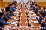 (누리일보) 이재명 대통령은 1일 국빈 방한 중인 프라보워 수비안토 인도네시아 대통령과 정상회담을 갖고, '한-인도네시아 특별 포괄적 전략 동반자 관계 수립에 관한 공동성명'을 채택했다. 강유정 청와대 대변인은 이날 한-인니 양국 간 정상회담 결과 서면브리핑을 통해 "양 정상은 ▴정치·안보 ▴교역·투자·산업 ▴첨단기술·에너지전환·녹색경제 ▴사회문화·인적 교류 ▴지역·국제문제 등에서 협력 강화 방안을 논의했다"며 이 같이 밝혔다. 우리나라와 인도네시아 모두, '특별 포괄적 전략 동반자 관계'를 수립한 첫 사례이다. 이 대통령은 회담 자리에서 지난해 11월 경주에서의 정상회담 이후 5개월여 만에 프라보워 대통령을 국빈으로 환영하게 돼 기쁘다고 했고, 프라보워 대통령은 이 대통령의 따뜻한 환대와 국빈 초청에 감사를 전했다. 이번 정상회담에서 양 정상은 한국과 인도네시아가 급변하는 국제정세 속에서 신뢰할 수 있는 우방이자 핵심 협력국으로서, 양국의 포용적 성장과 공동 번영 실현을 위해 경제·혁신, 안보·방산, 문화·창조 등 분야에서 포괄적, 전략적 협력을 강화해 나갈 필요성에 공감했다. 또