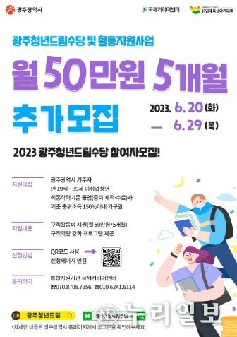 (누리일보) 광주광역시는 ‘2023 광주청년드림수당 및 활동지원사업’ 2기 참여자를 추가 모집한다.