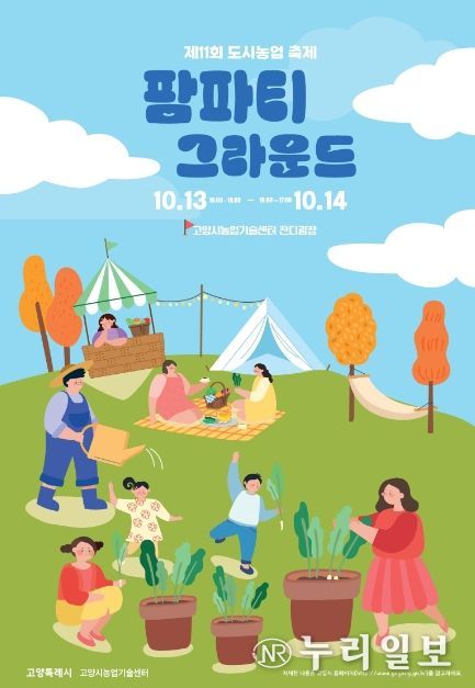 (누리일보) 고양특례시 최대의 도시농업축제 ‘팜파티 그라운드’가 10월 13일부터 14일까지 고양시농업기술센터 잔디광장에서 열린다. 도시와 농업의 만남의 장인 ‘팜파티 그라운드’는 다양한 농업 체험 행사로 시민에게 치유와 여가를 제공할 예정이다.