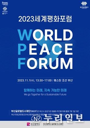 (누리일보) 부산시와 부산글로벌도시재단은 오늘(1일) 오후 1시 30분 웨스틴 조선 부산에서 '2023 세계평화포럼'을 개최한다고 밝혔다.