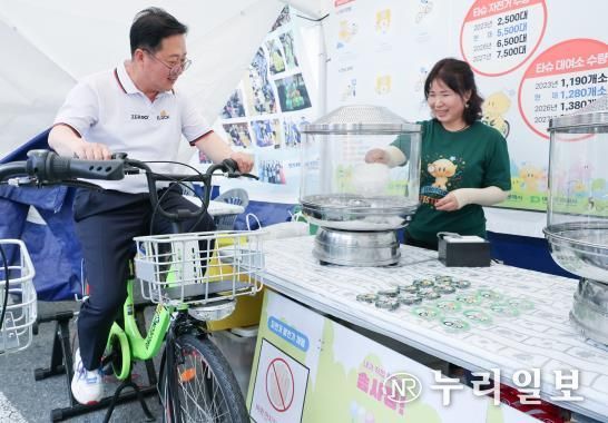 (누리일보) 공영자전거 타슈를 이용한 이색 체험 부스가 ‘2025 대전 0시 축제’에 등장하며 화제다.