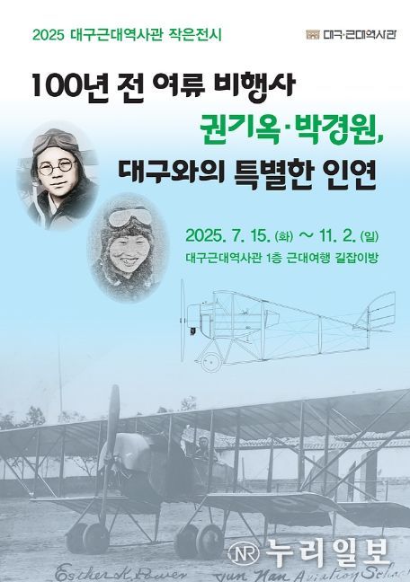 (누리일보) (재)대구문화예술진흥원 박물관운영본부 소속 대구근대역사관은 현재 진행 중인 ‘100년 전 여류 비행사 권기옥·박경원, 대구와의 특별한 인연’ 전시와 연계해 8월 27일 ‘일제강점기 비행장과 비행사, 대구비행장’을 주제로 특강과 전시해설을 개최한다.