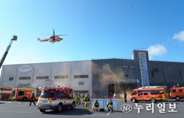 (누리일보) 제주특별자치도는 20일 오후 4시 10분 제주시 조천읍에 위치한 제주삼다수공장에서 ‘2025년 을지연습 병행 긴급구조 종합훈련’을 실시했다.