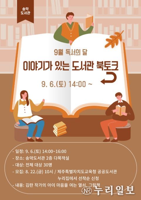 (누리일보) 제주도교육청 송악도서관은 9월 6일 오후 2시 도서관 2층 다목적실에서 ‘이야기가 있는 도서관 북토크’ 프로그램을 운영한다.
