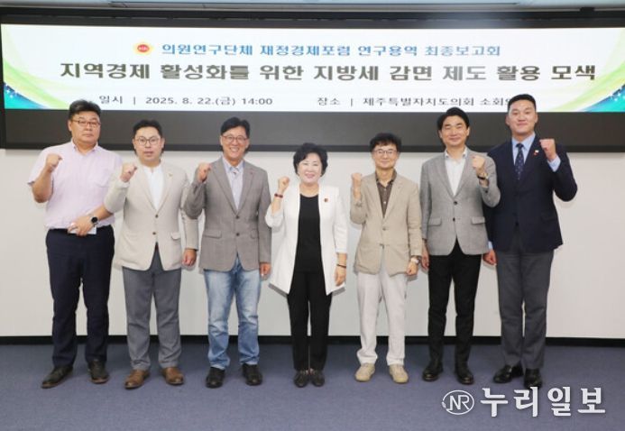 (누리일보) 제주특별자치도의회 의원연구단체 재정경제포럼은 22일 도의회 소회의실에서 ‘지역경제 활성화를 위한 지방세 감면 제도 활용 모색 연구’최종보고회를 개최했다.