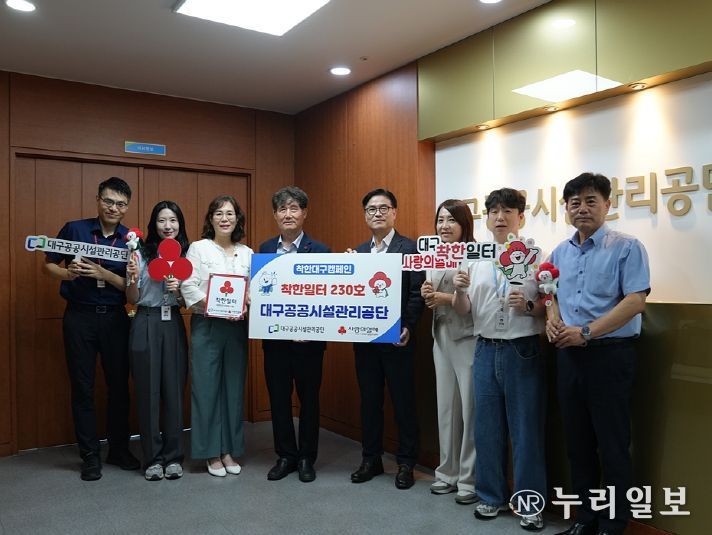 문기봉 대구공공시설관리공단 이사장은 “이번 착한일터 가입은 임직원 모두가 함께 만들어낸 뜻깊은 성과”라며, “앞으로도 지역사회와 상생하며 나눔을 꾸준히 실천해 나가겠다”고 밝혔다.