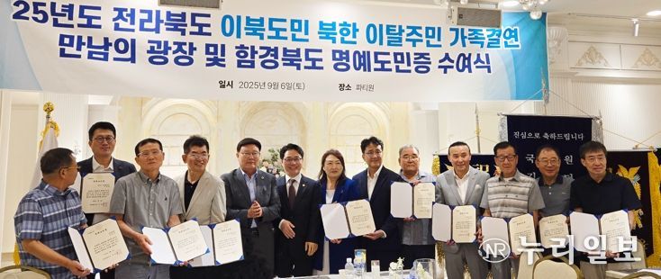 (누리일보) 이북5도 전북특별자치도사무소는 지난 9월 6일 오전11시 전주시 효자동 파티원에서 '이북5도 북한이탈주민 가족결연 만남의광장 행사 및 함북명예도민증수여식'을 개최했다.