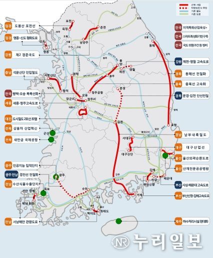 행정절차 중인 사업으로는 ▲새만금국제공항 ▲강원 제2경춘 국도 ▲충남 석문산단 인입철도 ▲세종-청주 고속도로 ▲경남 남부내륙철도 ▲대구산업선 ▲울산외곽순환도로다.