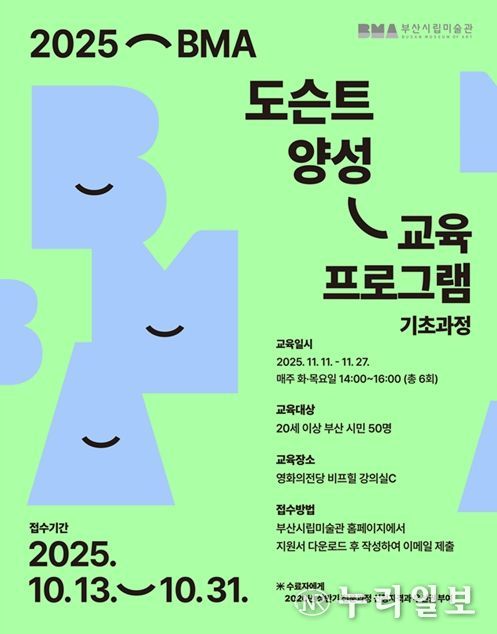 (누리일보) 부산시립미술관은 '2025년 전시 해설사(도슨트) 양성 교육 프로그램(기초과정)' 수강생을 모집하고 있다고 밝혔다.
