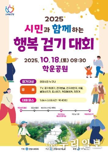 (누리일보) 안양시는 오는 18일 오전 8시 30분부터 학운공원 운동장(희성초 건너편)에서‘시민과 함께하는 행복걷기대회’를 개최한다고 15일 밝혔다.