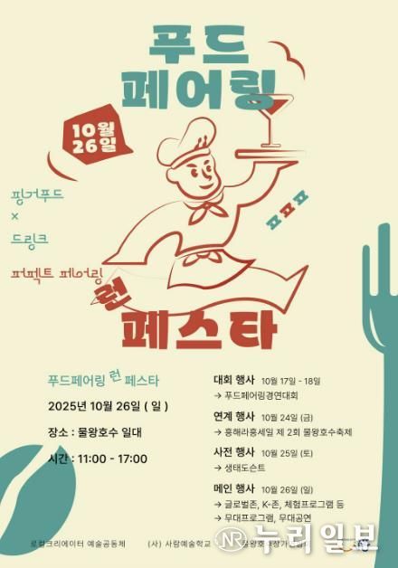 한편, 관련 부대행사로 오는 10월 17~18일 은계1어울림센터에서 ‘2025 세계푸드페어링대회’가 열리며, 수상자 3인에게는 시흥시장상 등이 수여된다. 참가비는 무료이며, 10월 16일까지 오후 12시까지 전자우편을 통해 신청할 수 있다.