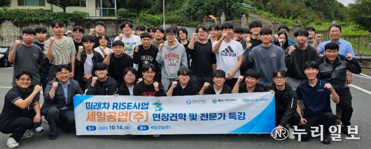 (누리일보) 경상국립대학교 미래차 RISE사업단(책임교수 김해지 미래자동차공학과 교수)은 10월 13~14일 (재)경남테크노파크 김해 미래자동차버추얼센터와 진주 세일공업(주)를 방문해 미래차 산업 현장견학 및 취업특강을 진행했다.