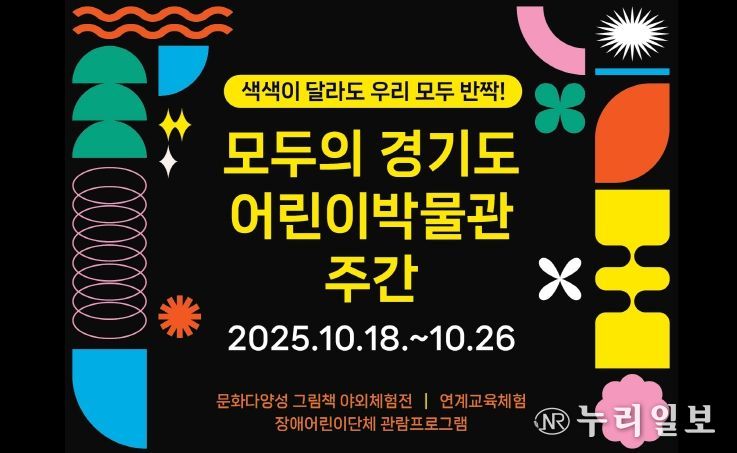 (누리일보) 경기문화재단 경기도어린이박물관(관장 박균수)은 오는 10월 18일부터 10월 26일까지 문화다양성 행사 〈색색이 달라도 우리 모두 반짝! 모두의 경기도어린이박물관 주간〉을 운영한다. 본 행사는 《문화다양성 그림책 야외체험전》, 유아 및 초등 어린이를 위한 연계프로그램, 장애어린이단체 맞춤형으로 개발된 접근성 콘텐츠를 활용한 관람프로그램 시범운영 등 총 3종으로 구성되어 다양한 모습의 관람객을 만나게 된다.