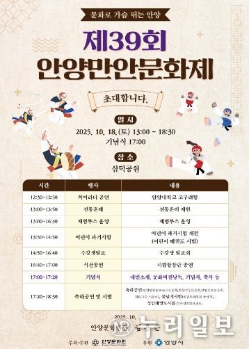 최대호 안양시장은 “한국 전통문화를 담은 콘텐츠가 세계적으로 큰 인기를 끌고 있는 만큼, 이번 행사가 우리 전통문화의 가치를 되새기는 뜻깊은 시간이 되길 바란다”고 말했다.