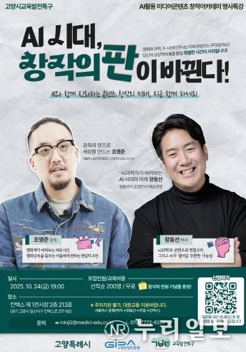 (누리일보) 고양산업진흥원은 오는 24일 오후 7시, 킨텍스 제1전시장 213호에서 명사특강 ‘AI시대, 창작의 판이 바뀐다!’를 개최한다.