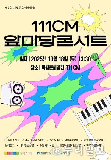 (누리일보) 수원문화재단은 오는 10월 18일 오후 1시 30분, 복합문화공간 111CM에서 제2회 새빛문화예술클럽 ‘111CM 앞마당 콘서트’를 개최한다.