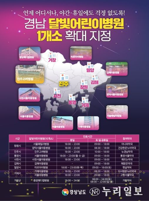 (누리일보) 경상남도는 소아 야간·휴일 진료 사각지대 해소를 위해 진주시에 ‘달빛어린이병원’을 신규 지정하고, 10월 20일부터 운영한다.
