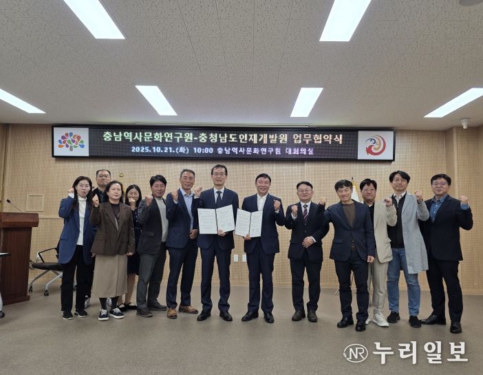 (누리일보) 충남인재개발원과 충남역사문화연구원은 21일 연구원 대회의실에서 지역 인재 양성 및 역사·문화 가치 확산을 위한 업무협약을 체결했다.