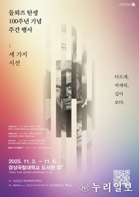 (누리일보) 경상국립대학교는 프랑스 철학자 질 들뢰즈(Gilles Deleuze; 1925.1.18.~1995.11.4.) 탄생 100주년 기념 학술대회를 11월 2일, 4일, 6일 진주에서 개최한다.