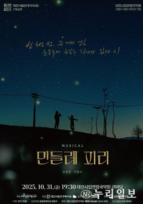 (누리일보) 대전시립연정국악원은 (재)예술경영지원센터 주최하고 문화체육관광부가 후원하는‘공연예술 지역 유통지원 사업’공모에 선정된 기획공연 창작뮤지컬‘민들레피리’를 31일 저녁 5시 국악원 큰마당에서 개최한다.