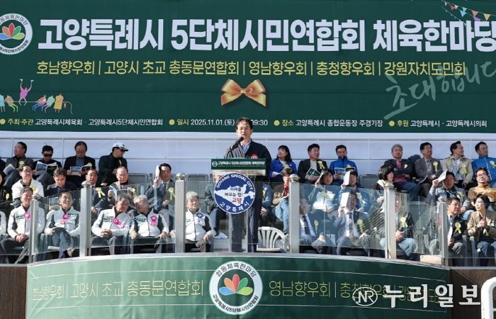 (누리일보) 이동환 고양특례시장이 1일 고양종합운동장에서 열린 ‘고양특례시 5단체시민연합회 체육한마당’ 개회식에 참석해 축사했다.