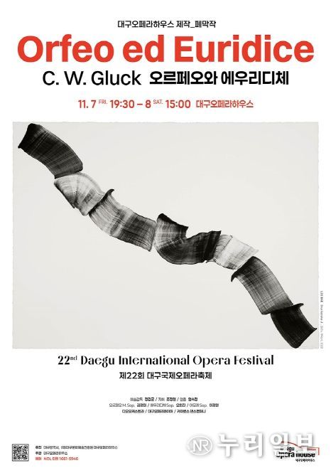 (누리일보) 대구문화예술진흥원 대구오페라하우스는 제22회 대구국제오페라축제의 폐막작으로 글룩의 대표 오페라 ‘오르페오와 에우리디체’를 오는 11월 7일 오후 7시 30분, 11월 8일 오후 3시에 대구오페라하우스 대극장에서 선보인다.