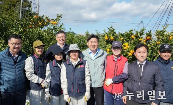 (누리일보) 오영훈 제주특별자치도지사가 20일 오후 서귀포시 남원읍 위미리 온주밀감 수확 농장을 찾아 일손 돕기에 나섰다.