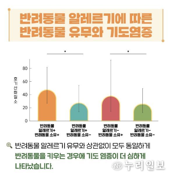 (누리일보) 질병관리청 국립보건연구원은 소아천식코호트(KAS)를 활용한 다기관 연구에서, ‘반려동물 알레르기가 없는 알레르기 천식환자가 반려동물을 키울 경우, 기도 염증과 중증도가 증가하는 경향’을 확인했다고 밝혔다.