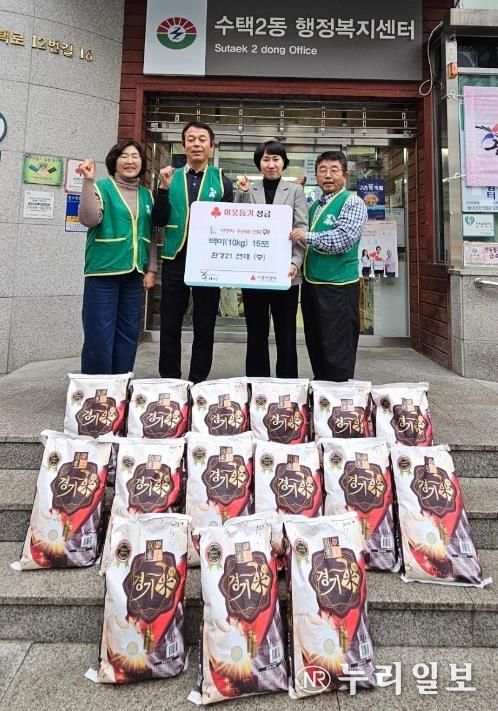 (누리일보) 구리시 수택2동은 지난 16일 구리시 환경21연대로부터 50만원 상당의 백미 10kg 15포를 후원받았다고 밝혔다.