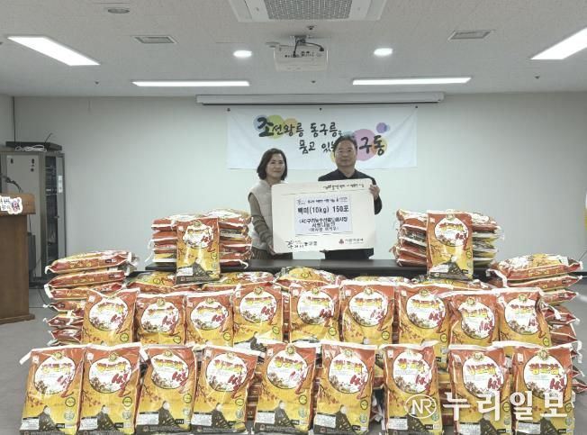 (누리일보) 구리시 동구동은 지난 16일 동구동 행정복지센터 대회의실에서 (사)구리농수산물도매시장 사랑나눔단으로부터 관내 취약계층을 위한 백미(10kg) 150포를 전달받았다.