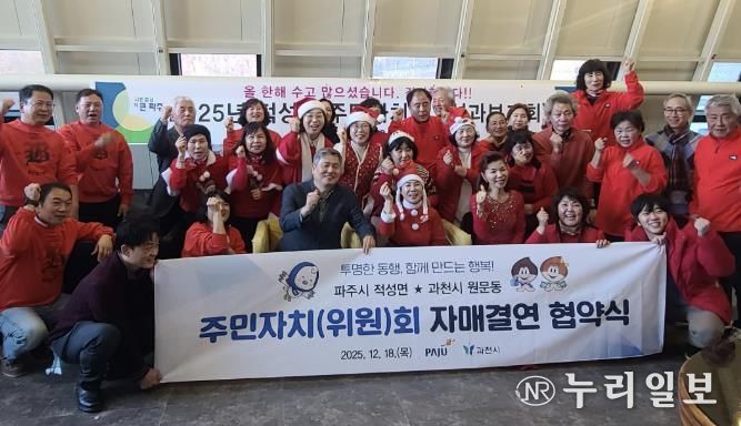 (누리일보) 과천시 원문동 주민자치위원회는 지난 18일 파주시 적성면 주민자치회와 도농 간 주민자치 활성화를 위한 자매결연 협약을 체결했다.