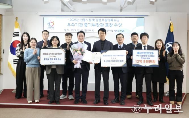 (누리일보) 안양시는 중소벤처기업부가 주관한 ‘2025년 전통시장 및 상점가 활성화 유공’ 포상에서 우수 지자체로 선정돼 중소벤처기업부 장관 표창을 수상했다고 19일 밝혔다.