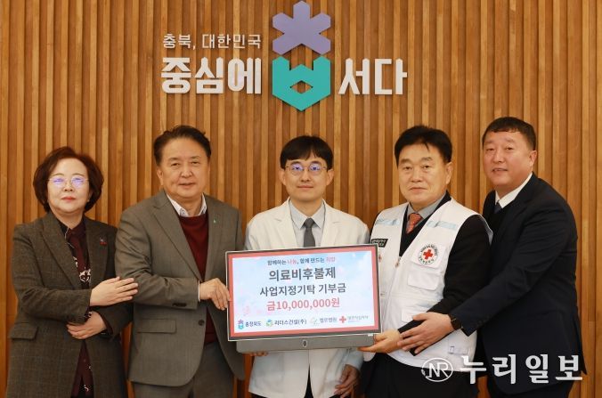 (누리일보) 충북도는 22일 도청 여는마당에서 첼로병원, 리더스건설(주) 등이 ‘의료비후불제 치아교정 특례지원금’ 사업 기부를 희망하는 16개 업체를 대표하여 대한적십자사 충북지사에 1천만 원을 지정 기탁했다고 밝혔다.