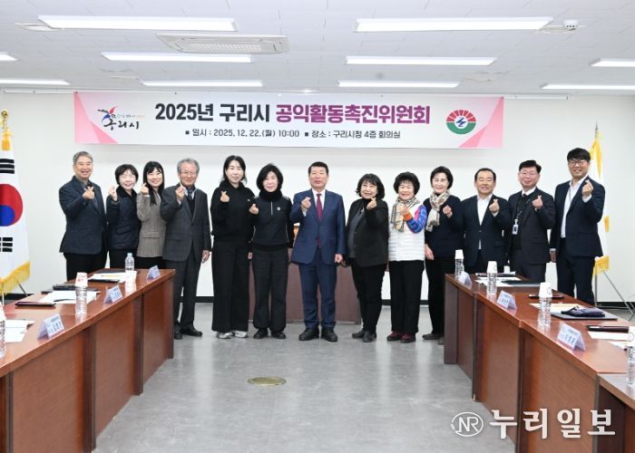 (누리일보) 구리시는 지난 22일 구리시청 회의실에서 ‘2025년 구리시 공익활동촉진위원회’를 개최하고, 2025년 공익 활동 지원 사업 추진 실적을 보고받은 뒤 2026년 공익 활동 지원 사업 추진계획을 심의·의결했다.
