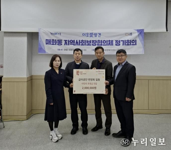 (누리일보) 금이공단 번영회와 하우스업이 연말연시를 맞아 매화동 취약계층을 위해 지난 12월 19일 매화동 행정복지센터를 찾아 후원금과 후원품을 전달하며 지역사회 나눔에 동참했다.