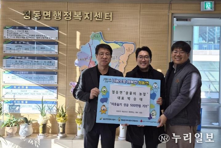 (누리일보) 점동면 관내 꿀꿀이 농장 박승대 대표가 지난 12월 22일, 연말을 맞아 이웃사랑 성금 500만원을 경기사회복지공동모금회를 통해 점동면 지정기탁으로 점동면행정복지센터에 전달하며 지역사회에 따뜻한 감동을 전했다.