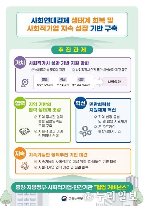 (누리일보) 고용노동부는 가치, 협력, 혁신, 지속가능성을 기본전략으로 제시하고 사회적기업 생태계 회복과 지속가능한 성장 기반 구축에 본격적으로 나선다.