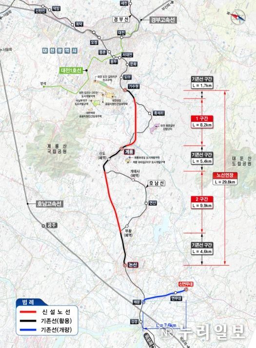 이번 사업은 총사업비 약 9천 2백억원을 투입하여 대전 가수원역에서 논산역까지의 굴곡진 노선을 직선화하고, 기존 노후 시설도 정비하여 250km/h의 고속 주행이 가능한 선로로 개량하는 국책 사업이다.