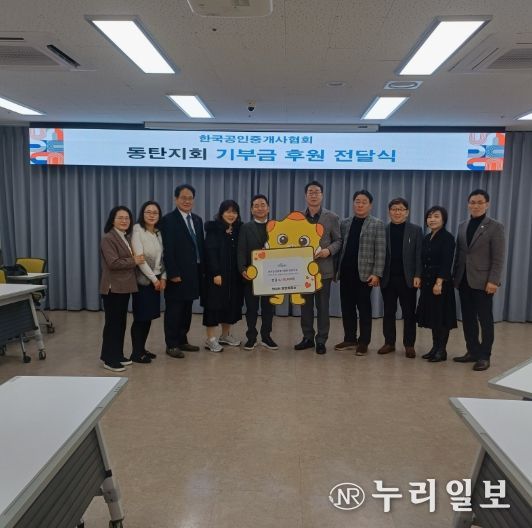 (누리일보) 화성특례시는 한국공인중개사협회 화성동탄지회(초록·중앙·리베라·호수·청계회 포함)에서 24일 화성시 동탄출장소를 방문해 어려운 이웃을 돕기 위한 기부금 619만 원을 기탁했다고 밝혔다.