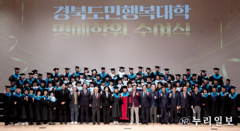 (누리일보) 경상북도는 24일 도청 동락관에서 경북도민행복대학 21개 시군 캠퍼스(학사) 및 6개 대학캠퍼스(석·박사) 관계자 등 600여 명이 참석한 가운데, 학사 866명, 석사 142명, 박사 60명 등 총 1,068명에 대한 ‘경북도민행복대학 명예학위 수여식’을 개최했다.