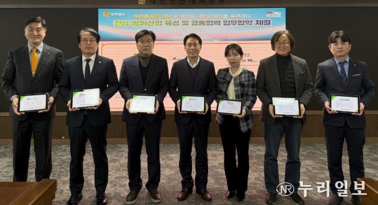 또 전남도와 순천시, 고흥군, 전남테크노파크, 한국건설생활환경시험연구원, 전남대학교, 순천대학교 등 7개 기관은 전남 방위산업 육성과 공동협력을 위한 업무협약을 맺고, 우주방산 산업 생태계 조성과 기업·기관 간 협력을 강화하기로 했다.