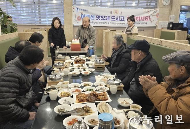 (누리일보) 수원시 장안구 연무동은 지난 15일 이교수한정식과 생신을 맞은 저소득 어르신들에게 따뜻한 한 끼를 대접하고 축하의 마음을 전하는 나눔 활동을 진행했다.