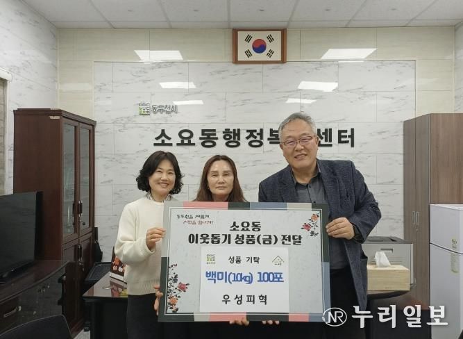 (누리일보) 동두천시 소요동 행정복지센터는 지난 3일 관내 업체인 우성피혁으로부터 설 명절을 맞아 소외계층 가구에 전달할 백미 10kg 100포를 기탁받았다고 밝혔다.