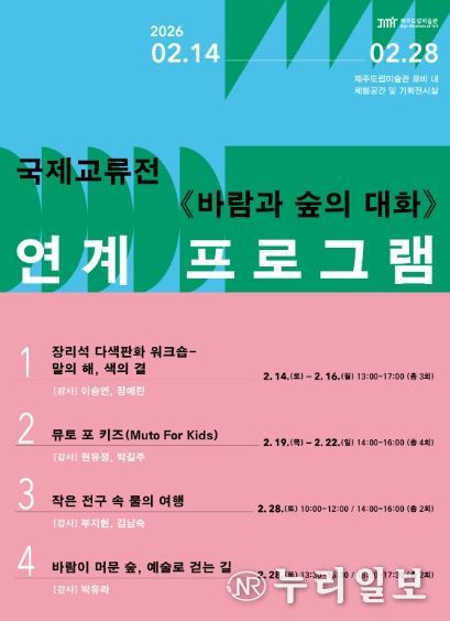 (누리일보) 제주도립미술관(관장 이종후)은 오는 2월 14일부터 28일까지 2주간 ‘국제교류전 《바람과 숲의 대화》의 연계 체험프로그램’을 운영한다고 밝혔다.
